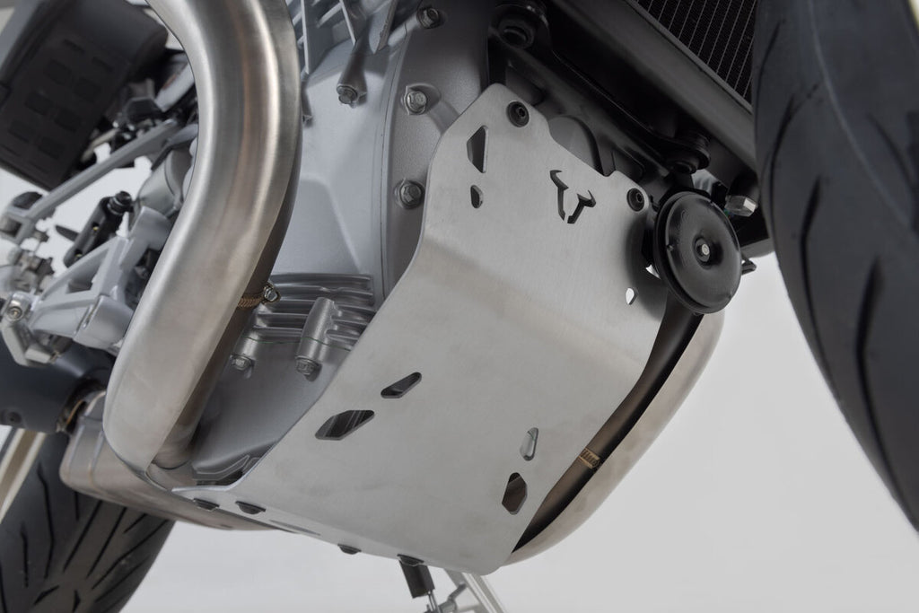 Additional protection against rocks and contact with the ground for the engine: the high-quality, aluminium alloy engine guard shows what it's capable of off the street, but provides extra safety and an individualized look on the streets, too. State-of-the-art production gives these bike-specific protectors a secure fit. The installation on frame mounting points lends additional stability and allows for easy installation.