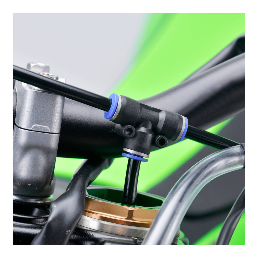 - Air hoses and one-touch joints are included to connect to the left and right fork air bleeds.