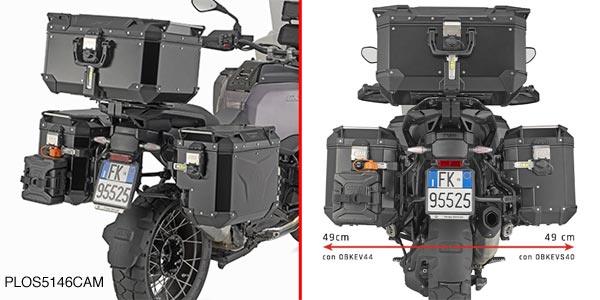 To fit panniers, you will need a Givi PL rack. You can use the PLOS5146CAM or PLO5146CAM for Givi's Trekker Outback panniers, or a PLO5146MK for Givi hard or soft Monokey panniers. All pannier racks can be converted to rapid release with the addition of the 07RKIT. Alternatively, if you have an original pannier holder, this can be adapted for Monokey panniers with the PL5146.