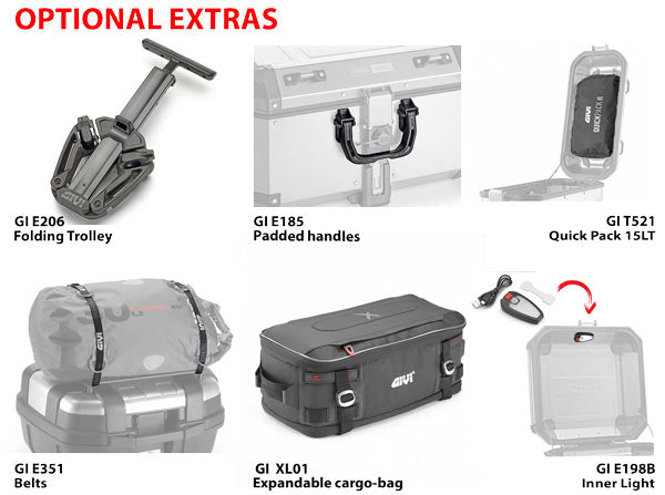 Note: Can be attached to any Givi Monokey plate, except plates equipped with the stop light kit connection.